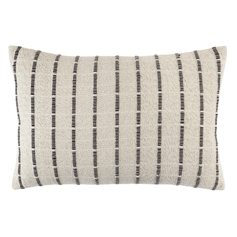 Stay cozy and add a touch of elegance to your home decor with the Pippen Lumbar Pillow. Its neutral cream and black cord striped design exudes a refined classic feel, with black yarn that seamlessly blends into the cream stripes for a cohesive look. The backside features a matching canvas color and a hidden zipper for easy use. With an overstuffed down-fill, this pillow is not only aesthetically pleasing but also incredibly comfortable.